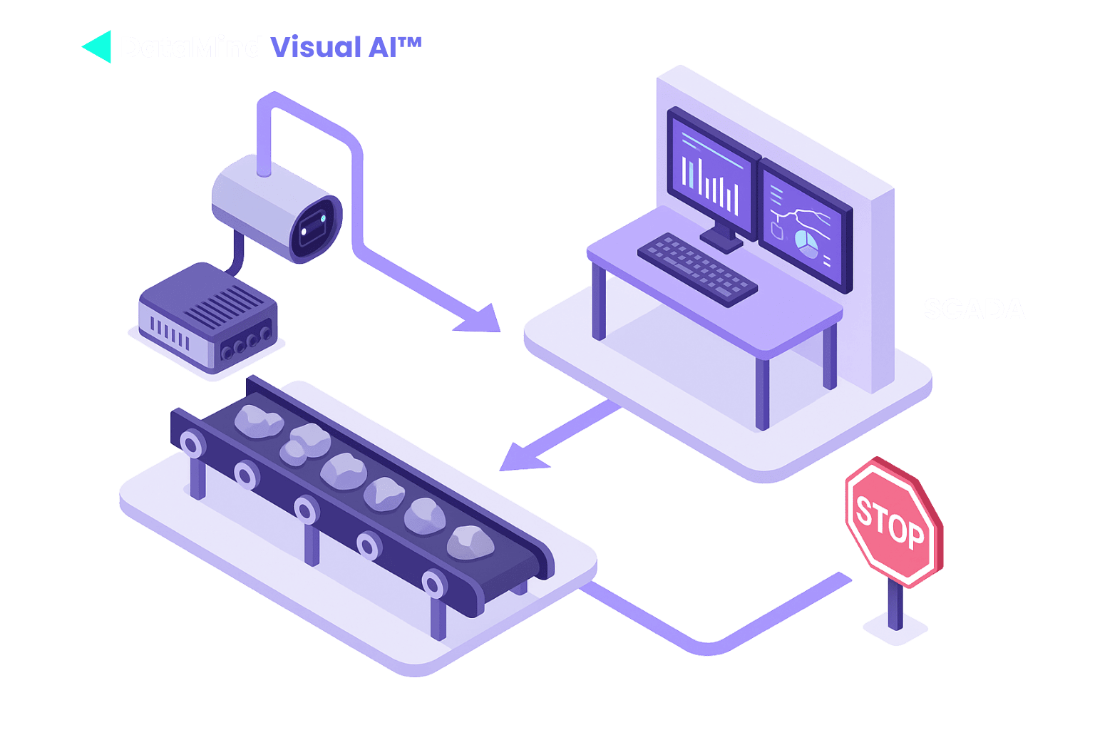 DataMind Visual AI™ detects high-risk events in real time and can automatically trigger a belt stop via SCADA, helping site teams act faster, prevent damage, and stay in control.